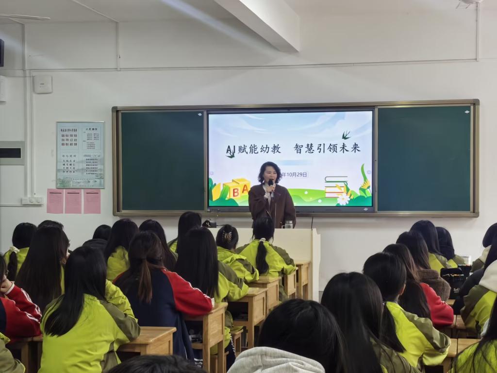 讲座中,方红娣园长以专业视角解读AI技术与幼教行业的深度融合。她强调,AI并非冰冷的技术工具,而是有温度的教育辅助伙伴,能够通过精准捕捉幼儿情感需求、优化自主学习路径、丰富互动体验等方式,让每个孩子的成长都能得到个性化适配。同时,她特别提醒在场师生,在运用AI技术时要把握好科技与陪伴的“平衡术”,避免过度干预幼儿成长过程,杜绝成人化引导,坚守幼教行业的育人本质。
