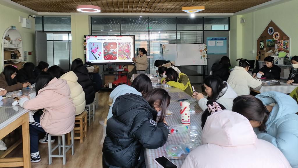 12月10日,健康管理学院张娟娟老师为同学们带来掐丝珐琅画梅花主题实践课,让非遗技艺走进校园课堂,传递传统工艺的匠心魅力。