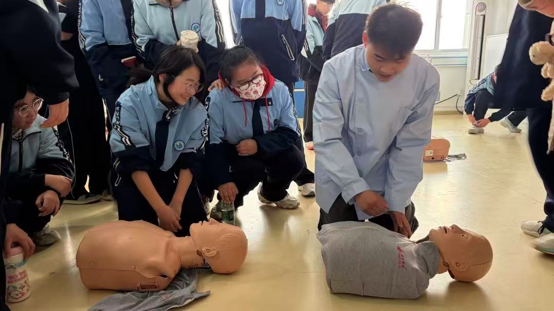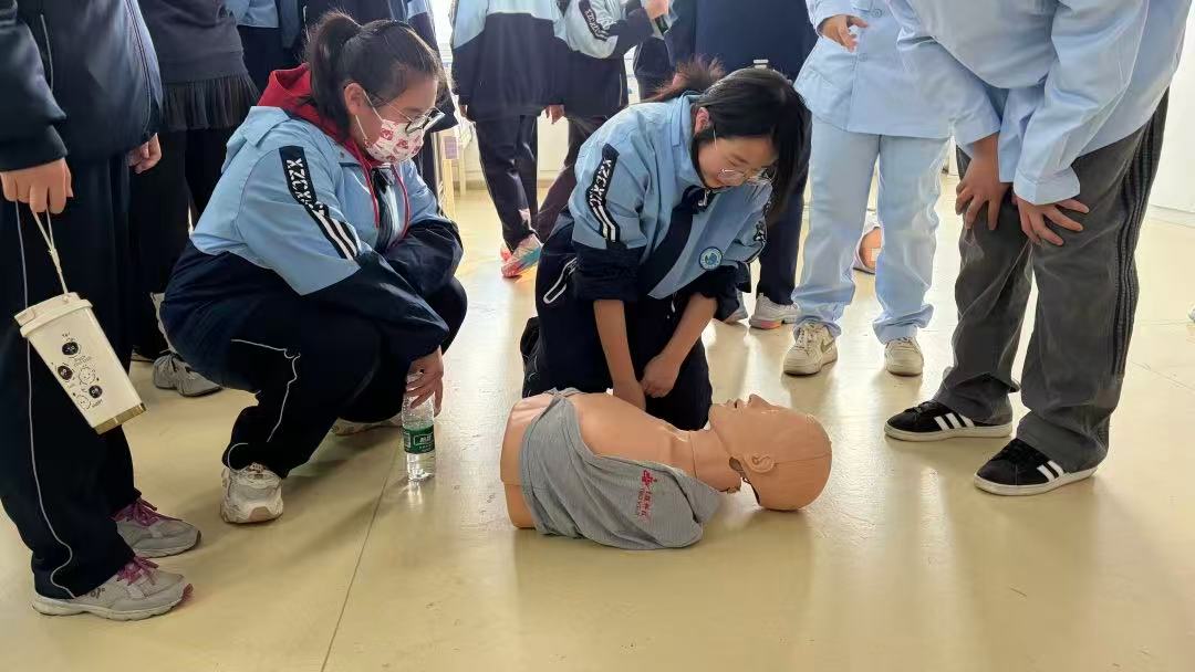 活动伊始,指导教师结合真实急救案例,生动讲解了心肺复苏的重要性、适用场景及核心操作原理,从判断意识呼吸、摆放急救体位,到胸外按压的深度、频率,再到人工呼吸的操作要领,每一个关键环节都进行了细致拆解,让城北中学的同学们对急救技能建立起系统的认知。