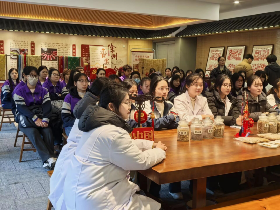 香包传情载健康,文化育人润青春。香包工作室里,我校学子化身非遗文化使者,分享国家级非物质文化遗产徐州香包的匠心传承与独特韵味,带领在场师生近距离品鉴传统工艺融健康养生的精巧之美;徐州生物工程职业技术学院药品食品学院的师生们带来专业的中草药辨识实操分享,通过实物展示、性味讲解、功效科普等形式,引导大家一同探寻本草奥秘,解锁传统医药守护健康的独特价值。