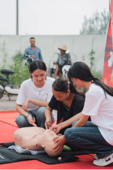 结合专业特色,志愿者们为村内老人耐心测量血压,针对性提供健康养生建议,细致关注老年人身体状况。同时开展海姆立克急救法、心肺复苏实操教学,邀请村民亲身参与演练,帮助大家掌握实用急救技能,提升自救互救能力。此次活动以多元服务精准对接基层需求,既传递了温情暖意,也展现了健康管理学子的专业素养与责任担当。